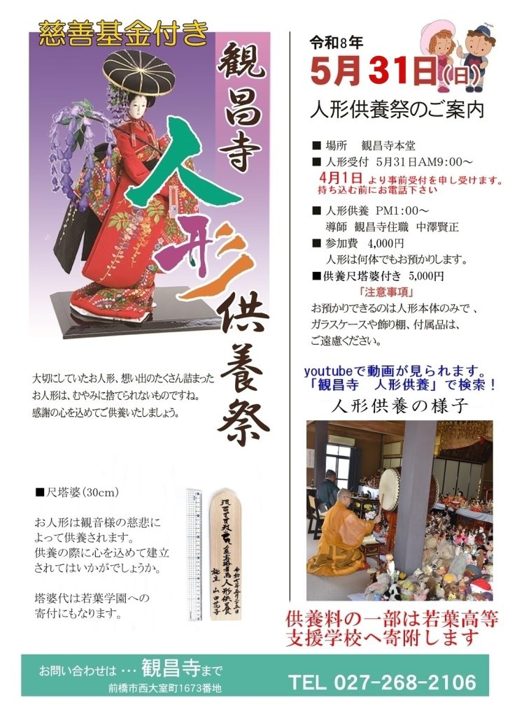 令和8年人形供養開催のお知らせです。